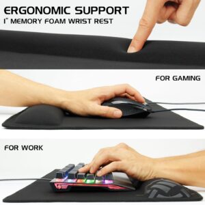 The ENHANCE Blackout Gaming Mouse Pad with built in memory foam ergonomic support features over 310 square inches of tracking surface and a 1 inch memory foam support bar for both keyboard and mouse. A premium fabric surface with both the comfort and space that serious gamers need.