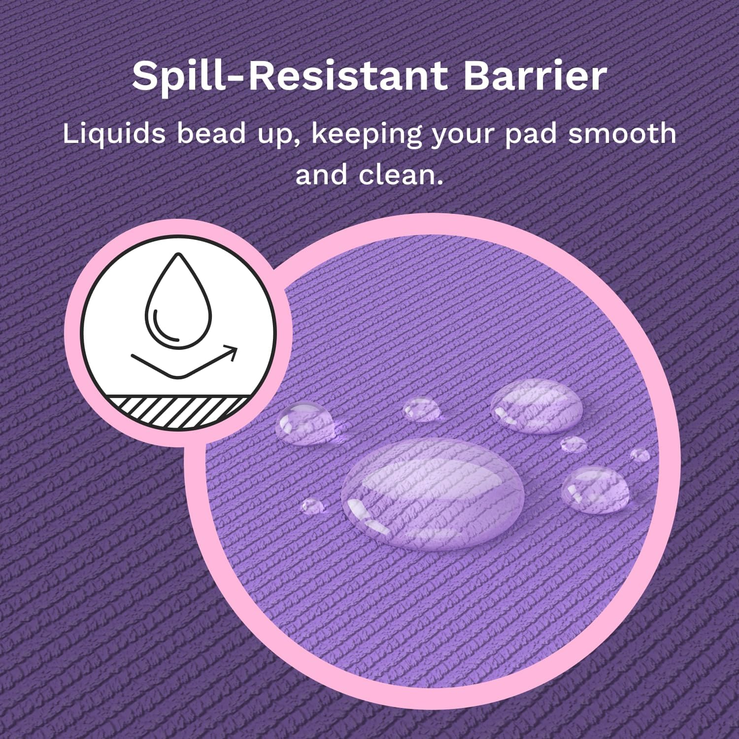 Liquids bead up on the surface for easy cleanup, protecting the pad’s smooth glide.