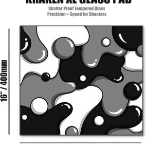 KRAKEN KEYBOARDS XL Glass Mouse Pad – DRIP Edition Black & White Glass Gaming Mouse Pad – Professional Artisan Mouse Mat Provides Improved Precision and Speed – Extra Large 18″ x 16″ (Stealth)