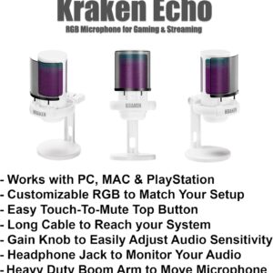 - Kraken ECHO RGB Gaming & Streaming Microphone is compatible with Windows, Mac OS and Mac/PS4/PS5. The 8.3ft (2.5m) USB cable is long enough to extend from behind the mic to the desktop for clear audio gaming, singing, streaming & recording.