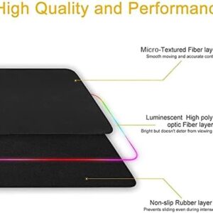 - ☀14 LED LIGHTING MODES – The RGB Gaming Mouse Pad features 14 Lighting Modes: includes 7 static light modes, alternating wave, synchronizing wave, alternating flash, alternating red changing, lights off, synchronize breathing, alternate breathing. This LED RGB Mouse Pad can create a cool gaming atmosphere through Choosing the color mode.