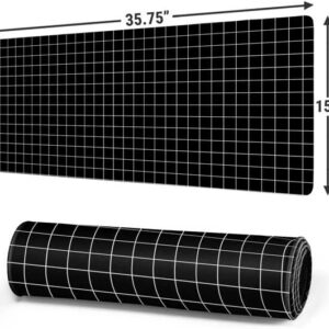 Skinit Extra Large Gaming Mouse Pad – Black Grid Design with Stitched Edges, Waterproof, Non-Slip Rubber Base, Desk Mat for Keyboard & Mouse, 35.75″ x 15.4″ inches