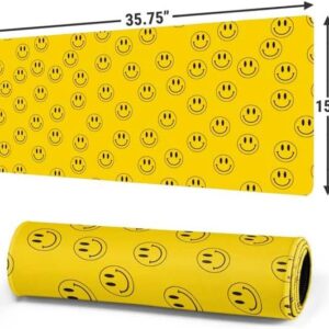 Skinit Extra Large Gaming Mouse Pad – Happy Face Pattern Design with Stitched Edges, Waterproof, Non-Slip Rubber Base, Desk Mat for Keyboard & Mouse, 35.75″ x 15.4″ inches