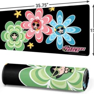 Skinit Extra Large Gaming Mouse Pad – Officially Licensed Powerpuff Girls Flowers Design with Stitched Edges, Waterproof, Non-Slip Rubber Base, Desk Mat for Keyboard & Mouse, 35.75″ x 15.4″ inches