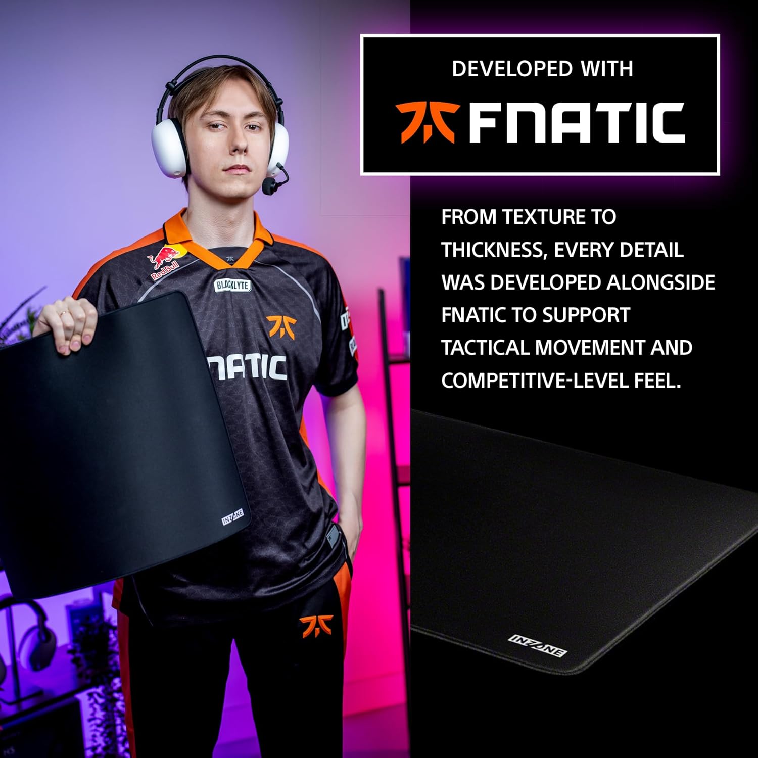 Sony INZONE Mat-F Control-Type Large Cloth Gaming Mousepad, Thick 6mm Cushion, High Friction, 480x400mm, Edge Stitched, SlimFlex Non-Slip Rubber Base, Developed with Fnatic