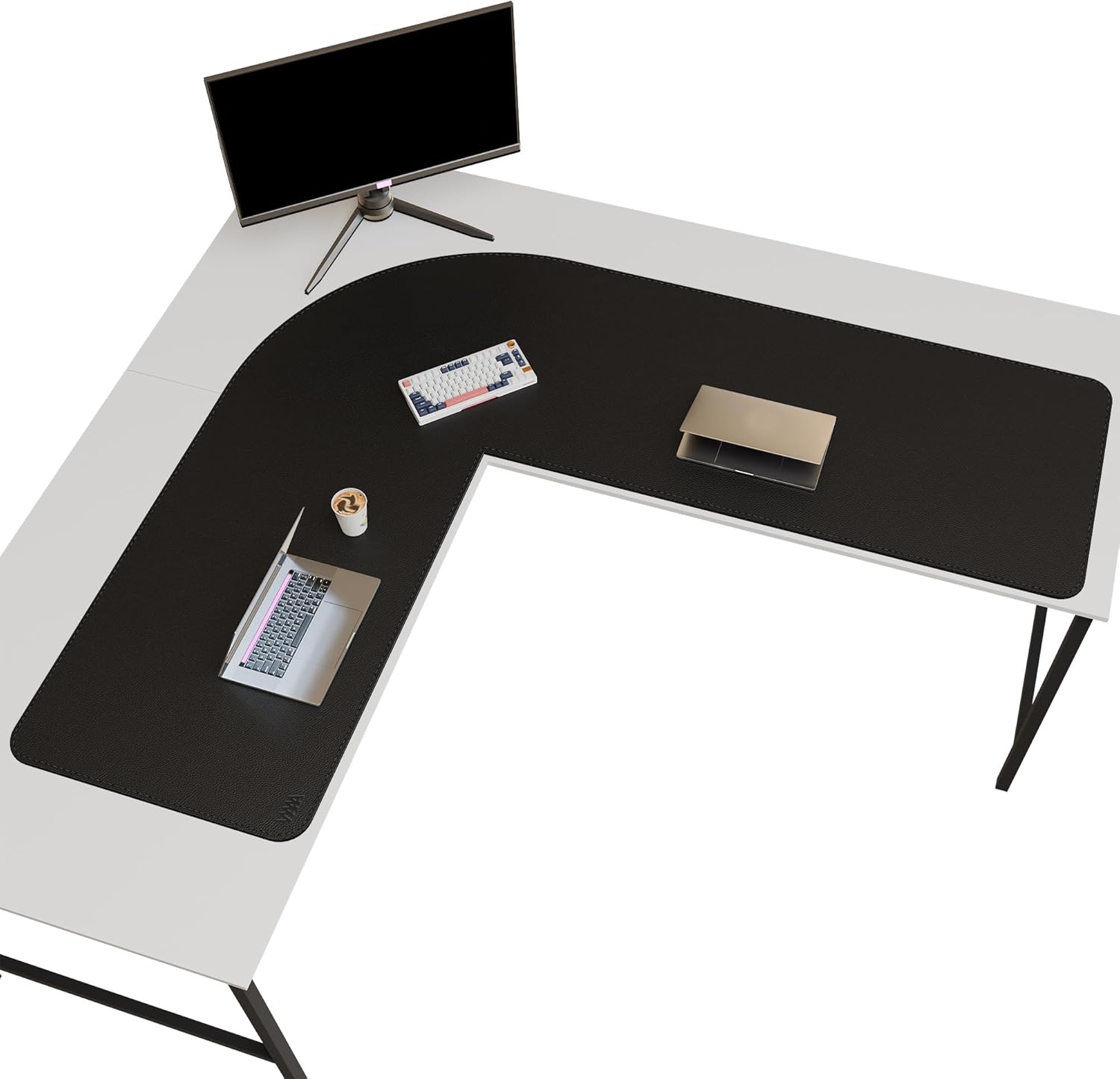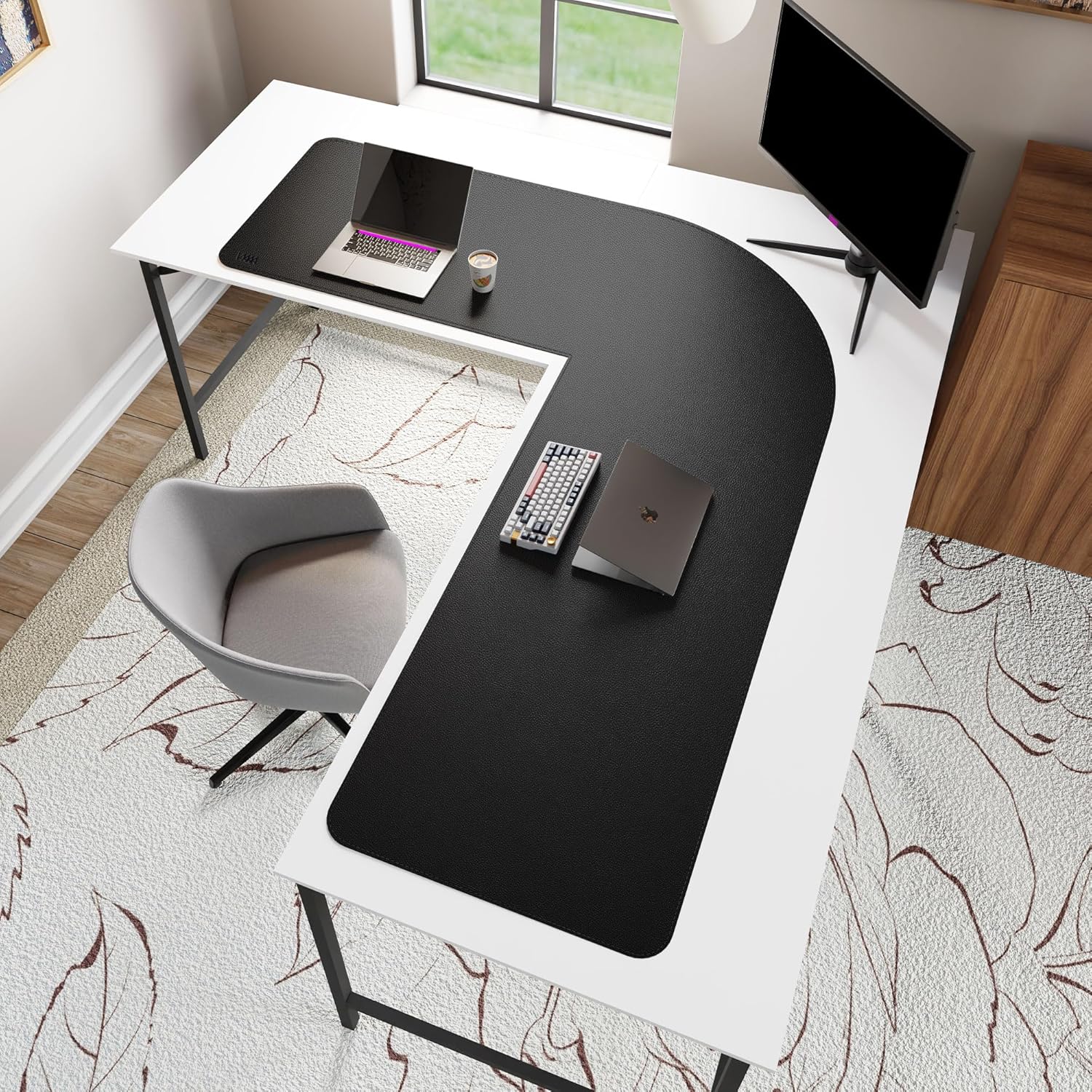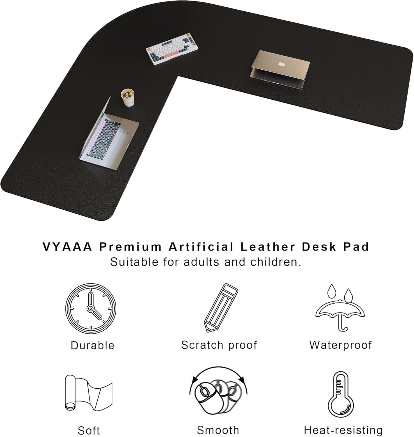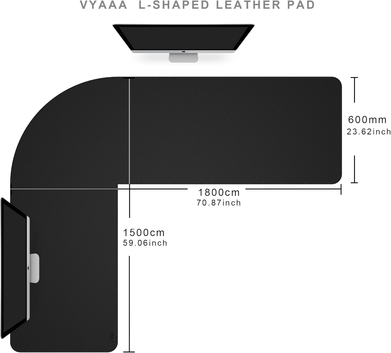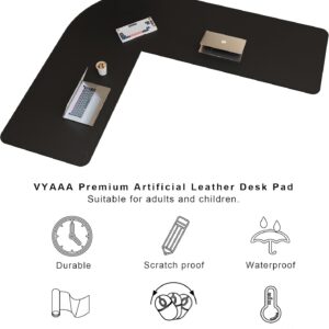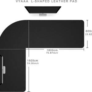 Vyaaa (59″+70.8″) x 23.6″ L Shaped Leather Desk Pad (Black), Dual-Sided Reversible PU Leather Desk Mat, Extra Large Mouse Pad, Compatible with L Shape Computer Desk for Home or Office