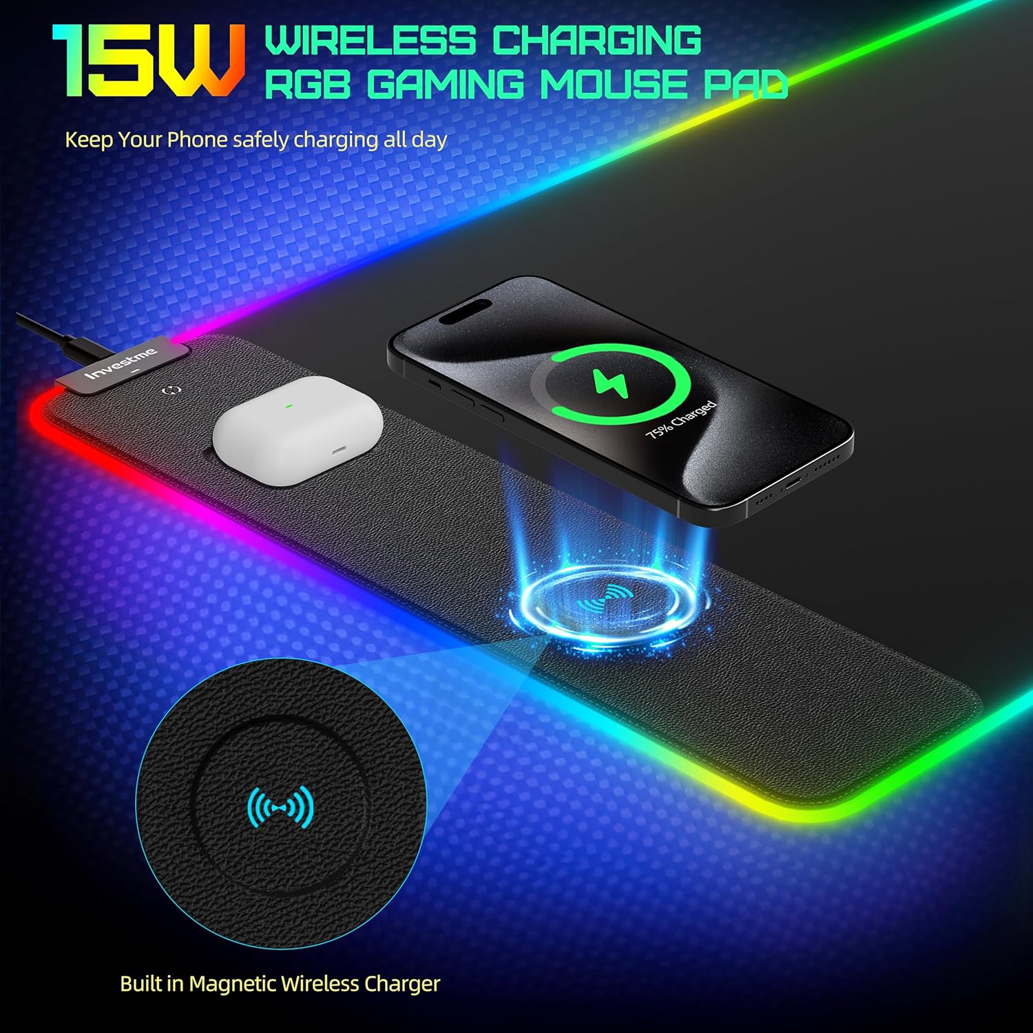 15W fast charging for your phone , airPods and other Qi-enabled devices